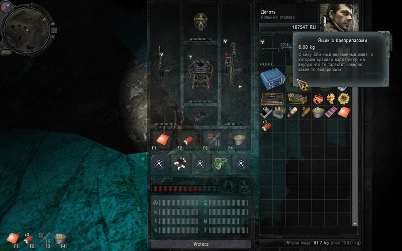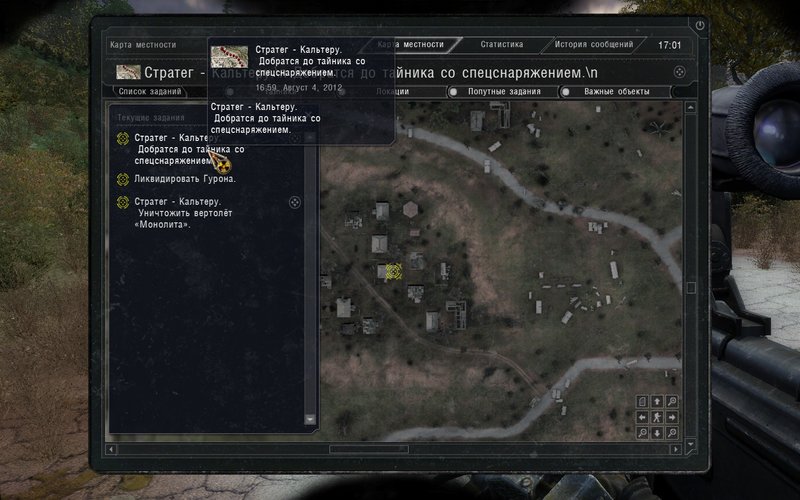 Odnajdujemy skrzynkę. Jest w cementowni na daszku. Znajdujemy kolejne pudełko z amunicją. Wracamy do zleceniodawcy po Wał Striełoka. Srogi nie ma dla nas więcej zadań.