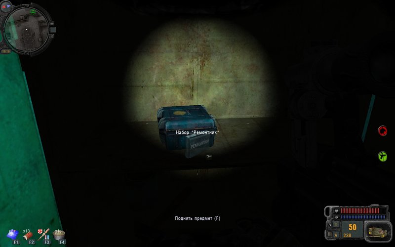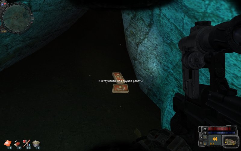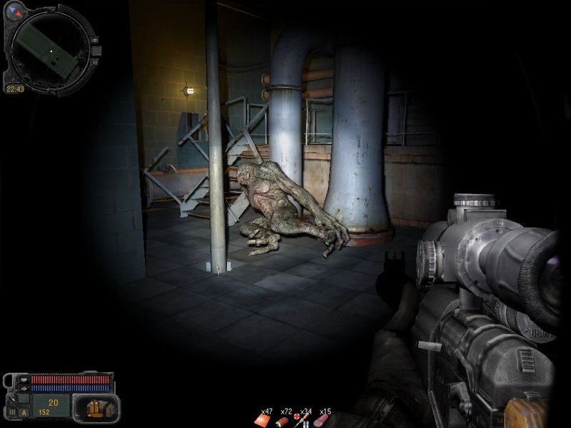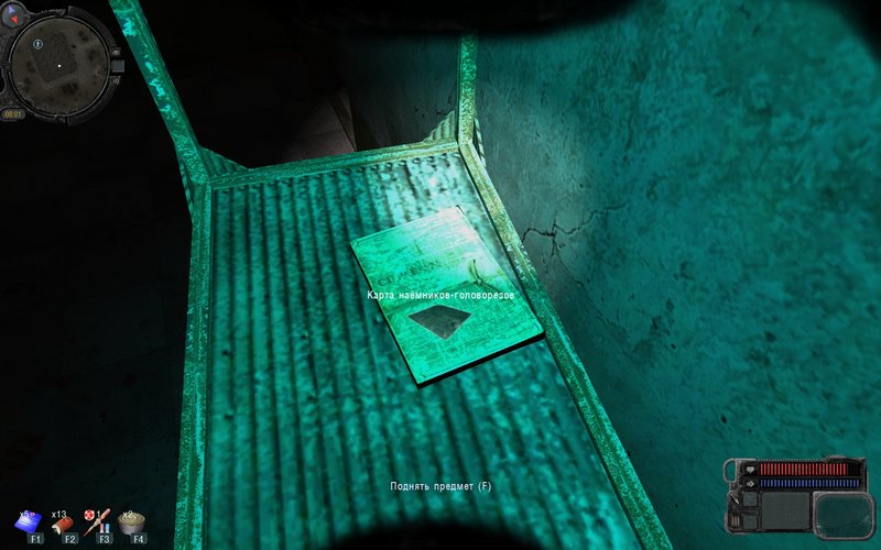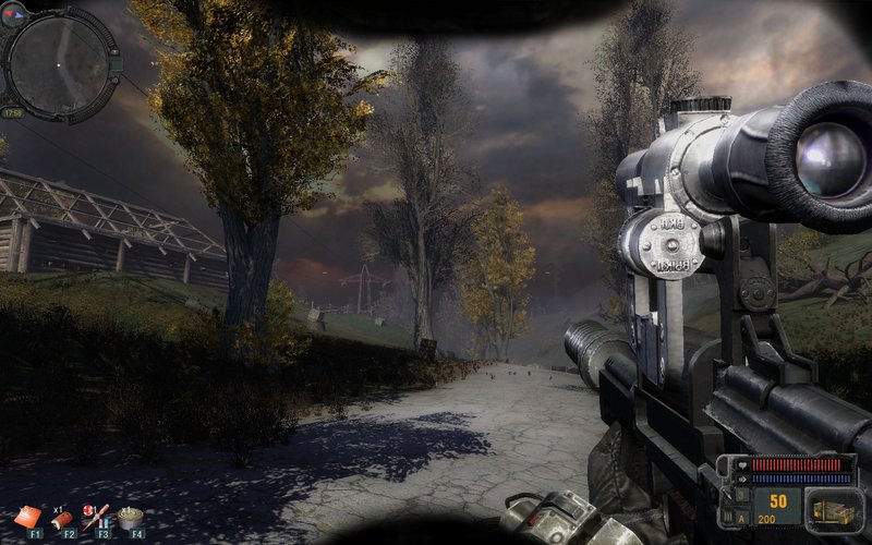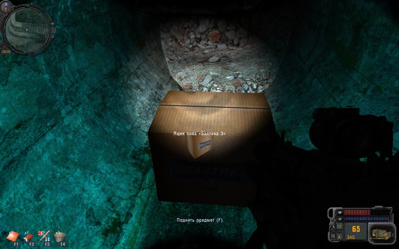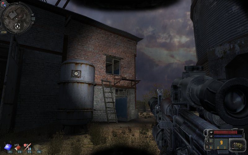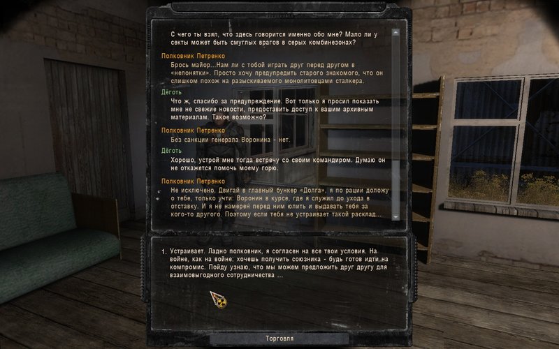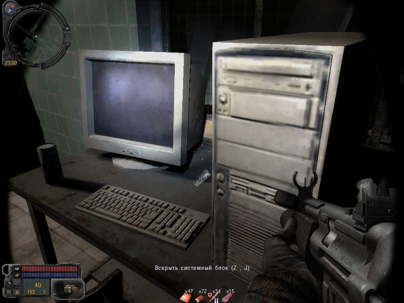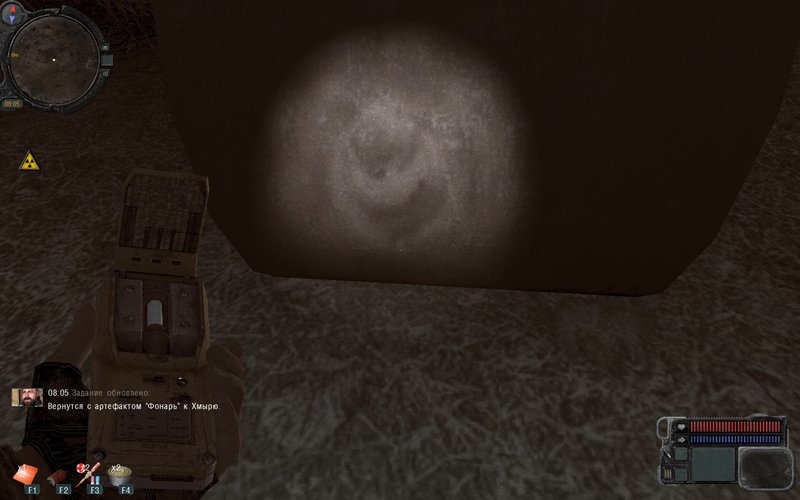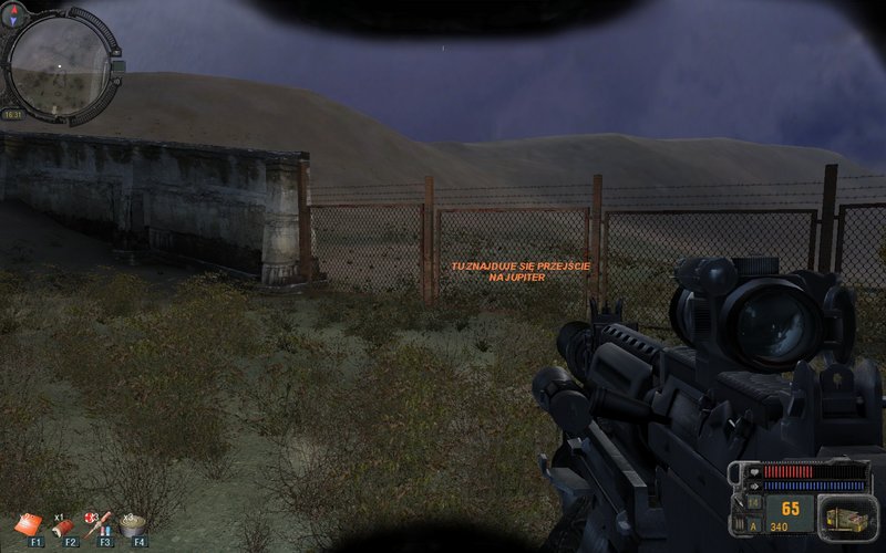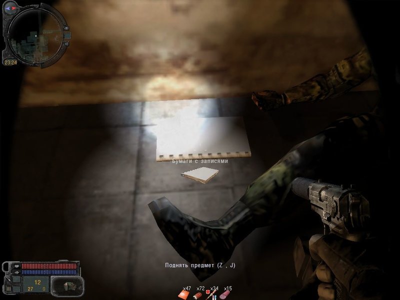 Rozmawiamy z najemnikami na 2 piętrze budynku (wcześniej “czyścimy” lokację). Chowamy się za ściankę jak na screenie poniżej i czekamy. Przychodzi 5 Monolitowców - walimy ich - między nimi nie ma Gurona. Idziemy na Magazyny Wojskowe (przejścia pomiędzy lokacjami są tam gdzie w podstawce tylko ich nie widać). Tu dostajemy namiar na schowek w Wiosce Pijawek - mina z timerem. Czyścimy bazę wolności - Gurona wykańczamy sami - wyłazi z nory ;D. Podkładamy minę na helikopterze - podchodzimY od przodu maszyny i naciskamy klawisz “F”. Odchodzimy na bezpieczną odległość - następuje wybuch. W Barze nie ma już nic do roboty - nagrodą za ubicie Gurona były informacje o śmigłowcu, więc zasuwamy na Kordon do przewodnika - czas na Zaton. Radar wygląda pięknie :).