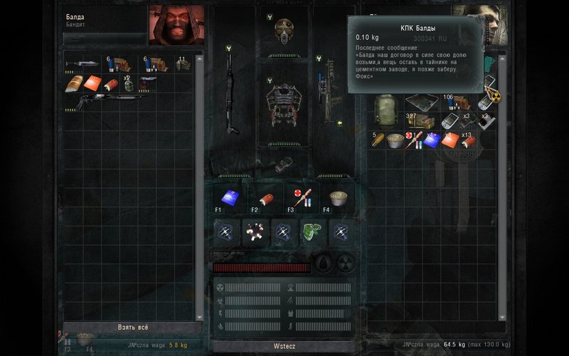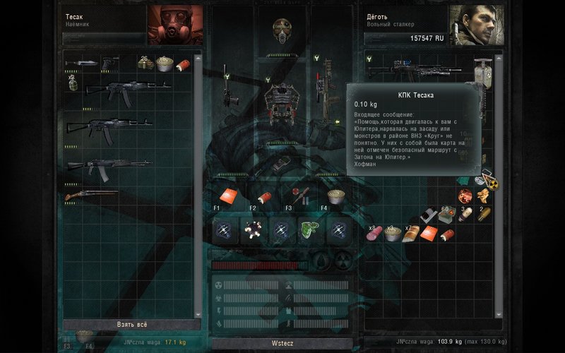 Screeny z X18 pokazują ( oprócz tego z burerem ) co należny znaleźć dla zamknięcia akcji. Wracamy na Kordon.