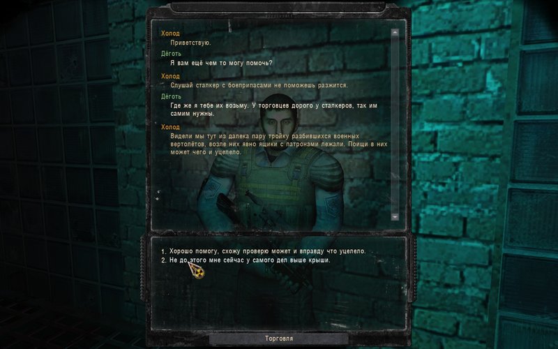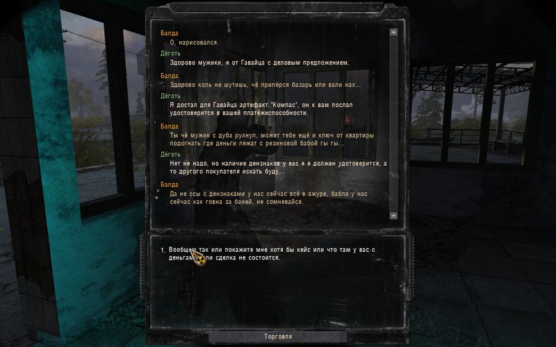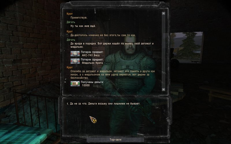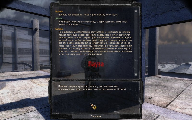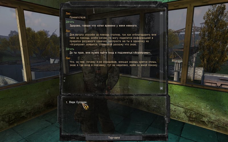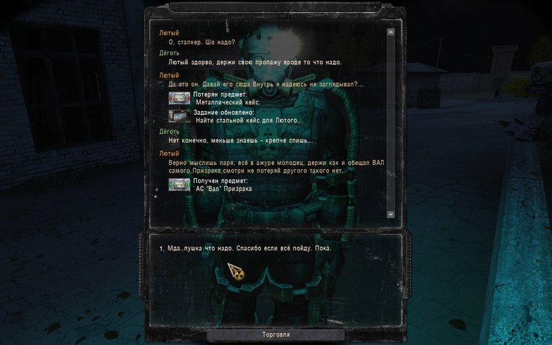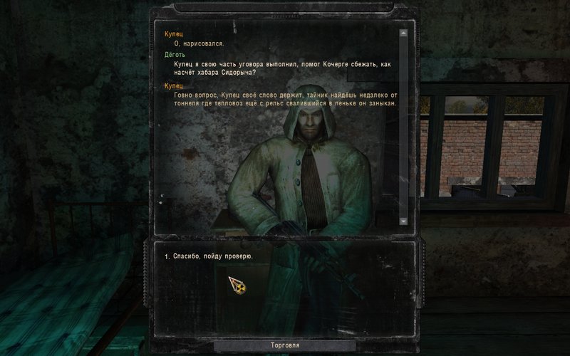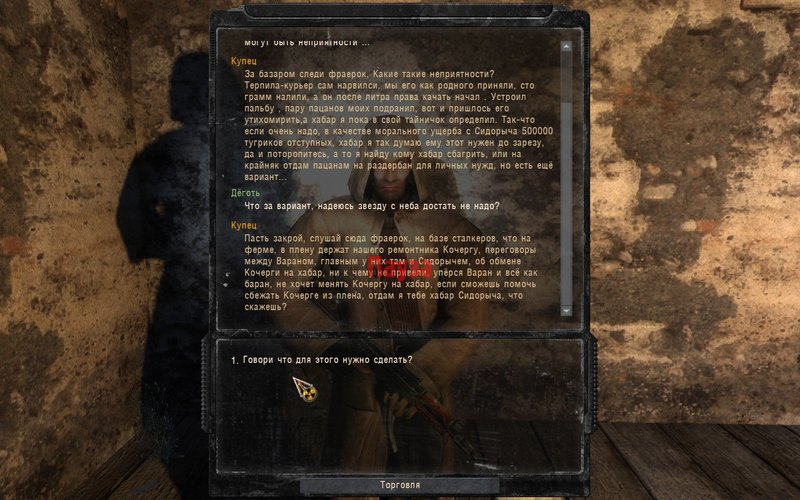 Idziemy do Kupca w ATP. Tam mówimy z nim - odsyła nas by pomóc bandycie Koczergie w bazie stalkerów - mamy wyciągnąć go z “pierdla”.