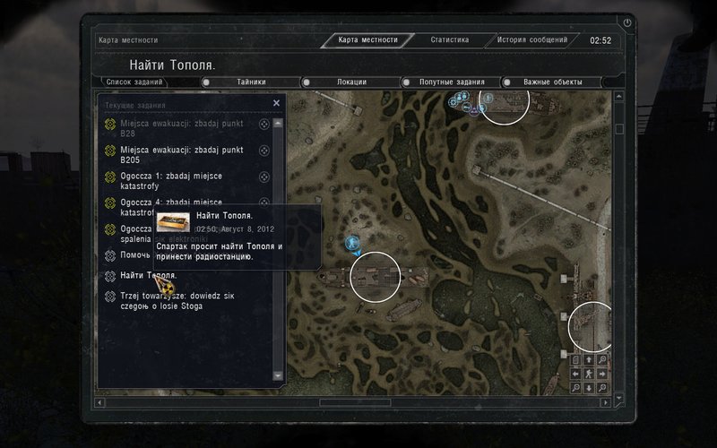 Odnajdujemy Topla tam gdzie dostaliśmy wskazówkę - obok bunkra naukowców. On mówi nam, że radio zgubił kurier uciekający przed pijawkami za cementownią. Znajdujemy ją. Szukając dynamitu dla Wilka w Wołkowie zabijamy 3 kolesi na Kopaczi - przypadkiem na nich wlazłem- przy jednym z nich jest PDA -nie wiem jeszcze dla kogo będzie ono potrzebne.