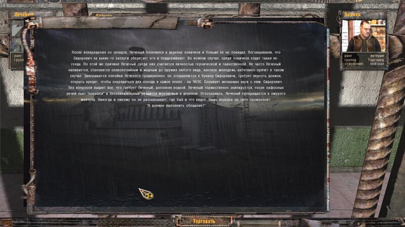 - Jeśli zdecydujemy się na dotarcie do Baru jako powinnościowec (moim zdaniem jest to wariant uboższy) nie rozmawiamy z Woroninem, tylko od razu idziemy do Petrenki. Nie pomagamy też Bromowi z bronią - to zadanie to ślepa uliczka.