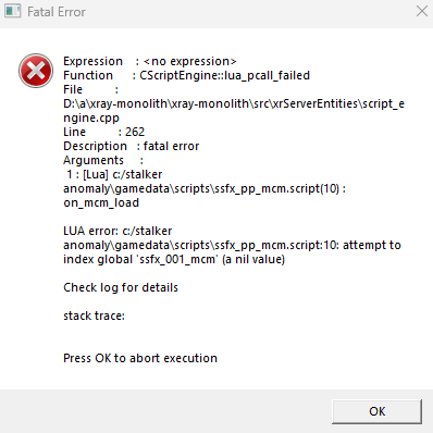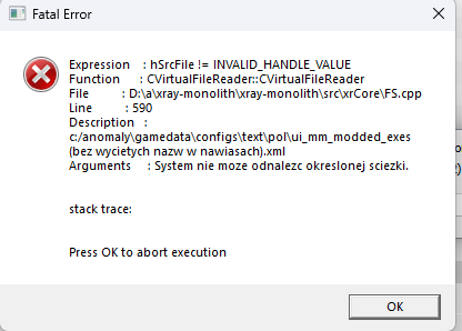 Może mi ktoś pomóc z tym pierwszy raz instaluje Stalker GAMMA wszystko robiłem według instrukcji i podczas uruchamiania wyskakuje taki błąd proszę o pomoc i z góry dziękuje.