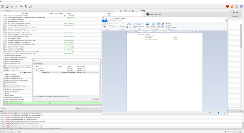 Usunąłem stare spolszczenie, wgrałem nowe, wyłączyłem moda 308 i nadal w grze mam lektora a nie polskie napisy ;/. Wrzucam swój Mod Organiser - spolszczenie jest na samym dole, ale w GAMMA Disabled - tak powinno być?