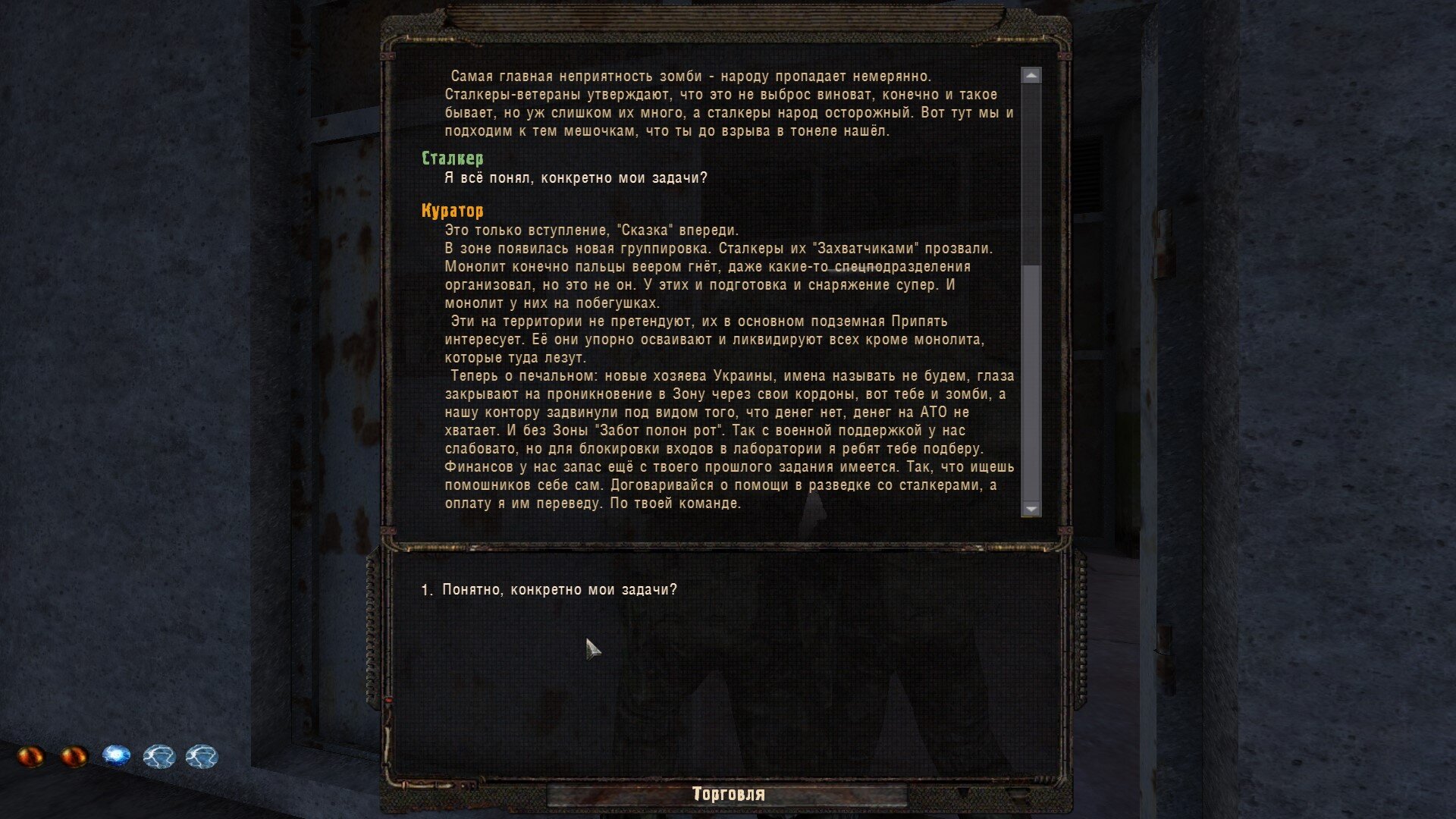 Fabuła jest dostępna dla wszystkich frakcji z wyjątkiem Bandytów, Monolitu oraz Zombifikowanych;