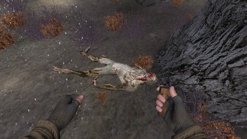 Cóż, nie mogłem znaleźć Śnieżnej pijawki, bo już jej nie było. Sprawdziłem to, cofając się do zapisu niedługo po podniesieniu artefaktu Śnieżka. Wróciłem na miejsce i znalazłem pijawkę nie tylko śnieżną, ale i zimną. Wcześniej raniona prawdopodobnie dokonała żywota w anomalii. Udało mi się dopisać mutanta, z tym że w innym miejscu lokacji więc w papierach wszystko się zgadza. Przyjrzałem się jej bliżej i na moje oko Śnieżna jest znacznie bledsza od swoich pospolitych koleżanek.