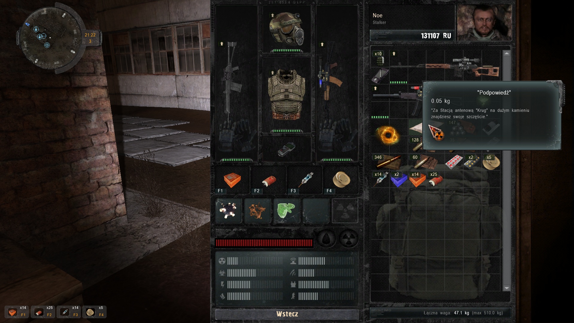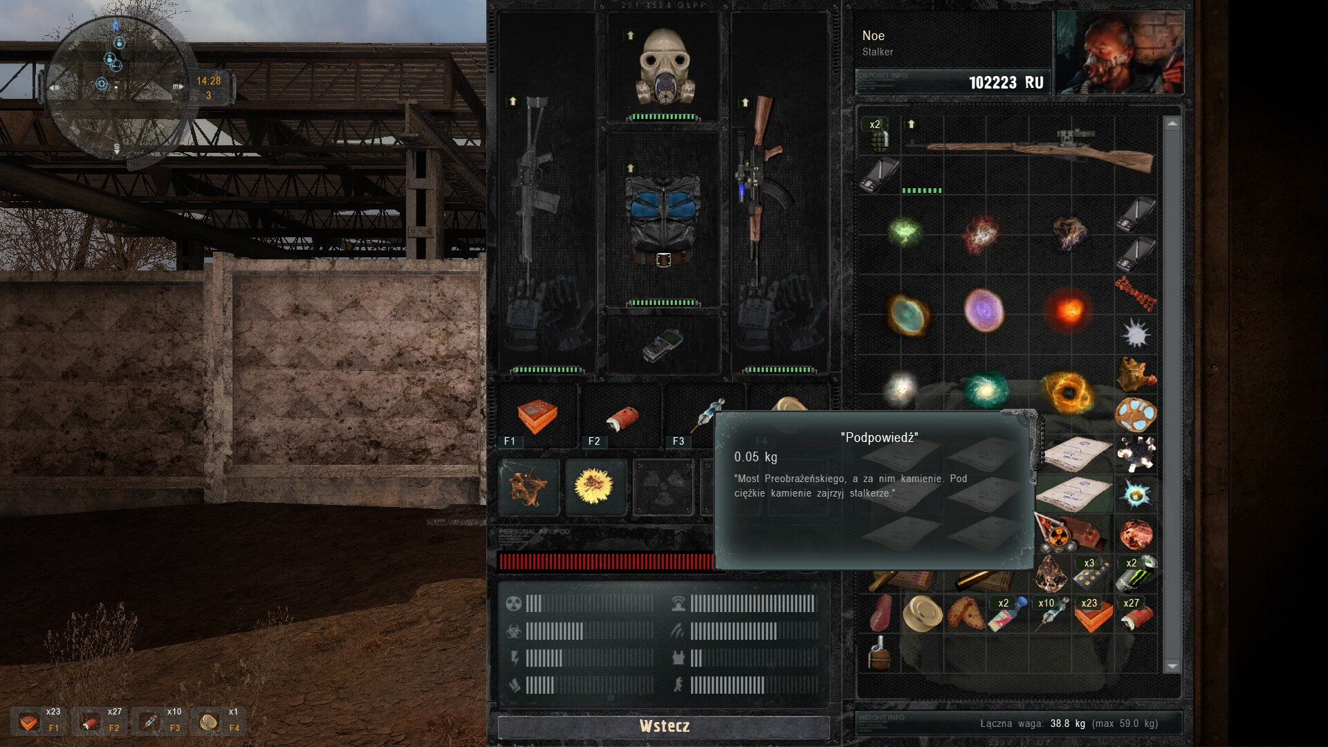W tym modzie, tak jak w Zonie, parę rzeczy jest nieprzewidywalnych, np. nie wiadomo czy na Zatonie pojawią się zombiaki. Jeśli tak, to z Niedźwiedziem nie powinno być problemu, jeśli nie, pozostają handlarze, ale u nich ten towar jest niezwykle rzadko. Schowków jest sporo, wszystkich nie sprawdzałem. Tak że może być taka sytuacja, że Niedźwiedzia weźmiemy do ręki dopiero w Prypeci. Taki urok moda. Chyba że zajrzymy do plików…