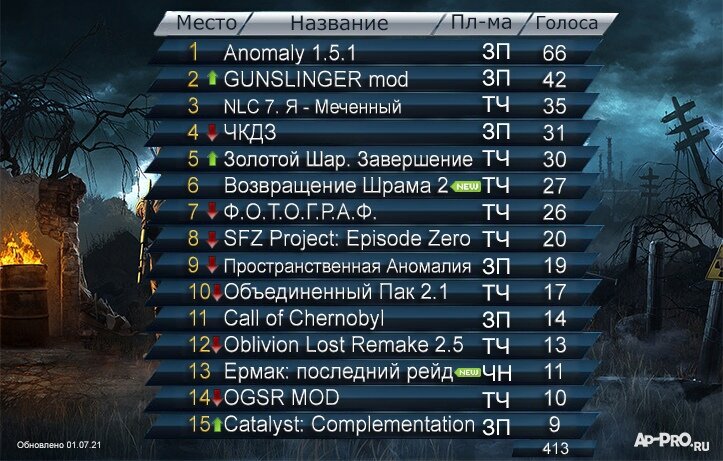 Podsumowanie wyników ankiety na AP-PRO.RU z najlepszymi modami - Czerwiec 2021.