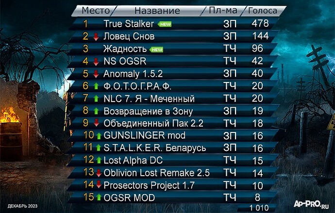 Podsumowanie wyników ankiety na AP-PRO.RU z najlepszymi modami - grudzień 2023 r.