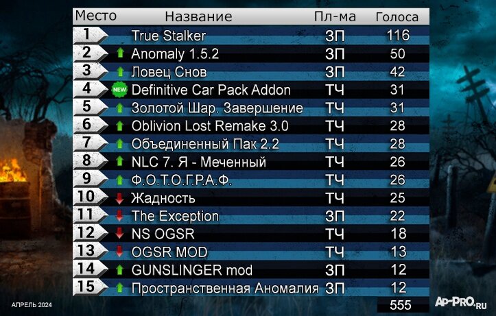 Podsumowanie wyników ankiety na AP-PRO.RU z najlepszymi modami - kwiecień 2024 r.