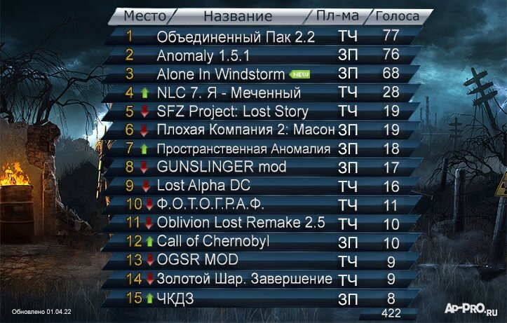 Podsumowanie wyników ankiety na AP-PRO.RU z najlepszymi modami - Marzec 2022.