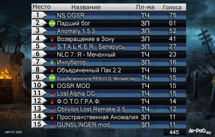 Podsumowanie wyników ankiety na AP-PRO.RU z najlepszymi modami - sierpień 2023 r.