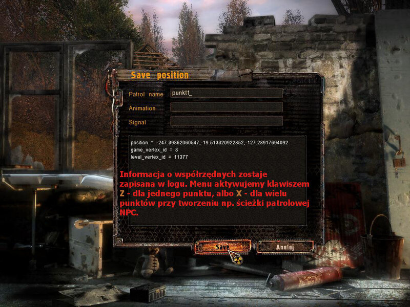 Zanim zaczniemy pracę z tworzeniem zadań, będzie nam potrzebny program/skrypt umożliwiający pokazanie game_vertex_id oraz level_vertex_id, niezbędnych dla spawnu obiektu.
