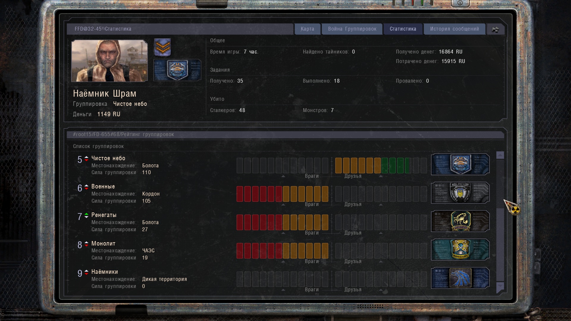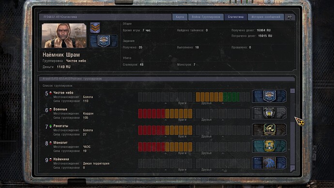 Jeśli chodzi o punkty kontrolne. W bazach Wolności i Powinności znajdują się 3 punkty przejęcia baz. A twórcy napisali tylko jeden punkt na bazę Powinności, niepoprawnie, ponieważ ten punkt nie obejmuje punktu, w którym pojawiają się wrodzy NPC. Co więc zrobiono? Najbardziej logiczną rzeczą było zarejestrowanie zajęcia wewnątrz budynku bazy Powinności, jednakże modmaker zdecydował się zarejestrować zajęcie samego budynku, północnego i południowego punktów kontrolnych. (Więc wydaje się to bardziej logiczne). Na bazie Wolności są 3 punkty, podobnie jak w bazie Powinności, dopisano zajęcie 3 punktów, zachodniego, budynku i baru. Edytowano pliki: faction_bandit, faction_csky, faction_duty, faction_freedom, faction_monster, faction_renegade, faction_stalker.