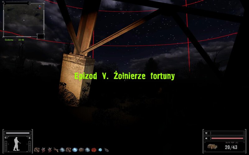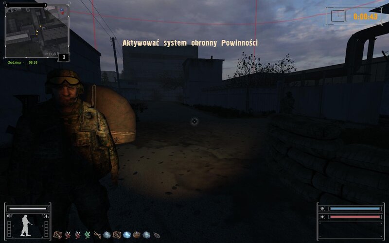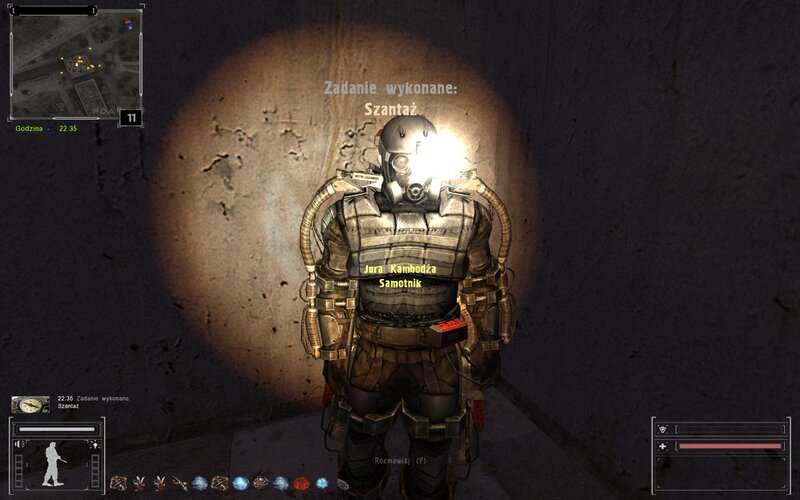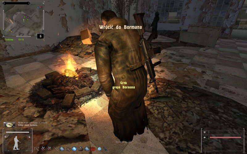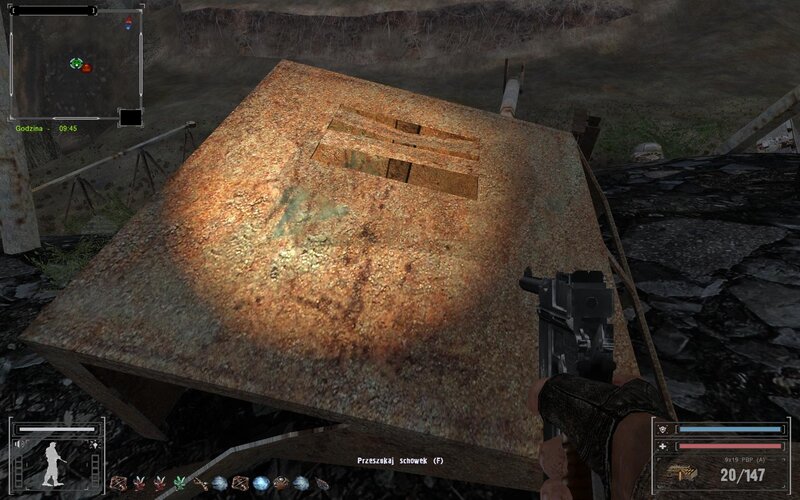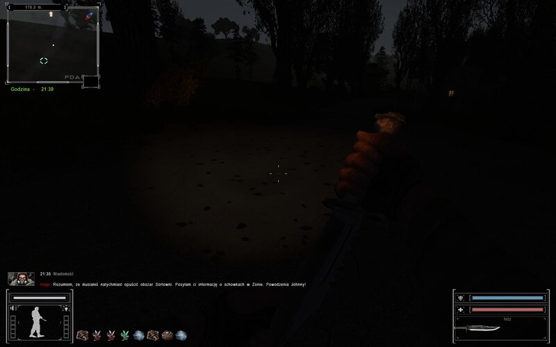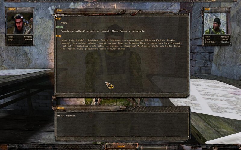 Startujemy koło bajora z koparką. Spotykamy tam dwóch szukających czegoś w wodzie stalkerów. Udajemy sie do Baru na rozmowę z Hugo. Dowiadujemy się o swoich zadaniach. Rozmawiamy z Barmanem i Sidorem w sprawie rzekomej pracy. Naszym prawdziwym celem jest przeniknięcie do centrum Zony - mamy odnaleźć ciężarówkę z uszkodzonym kontenerem. Sid odsyła nas do pułkownika Coppera. Ten niestety nie daje nam przepustki i odsyła z kwitkiem. Przychodzi sms od Hugo. Po rozmowie z nim idziemy do Sida. Ten w zamian za mieszkanie , zleca nam rozprawę z grupą Bura. Przed tym idziemy do Hugo - ten daje nam dodatkowe noże. Tak uzbrojeni idziemy na umówione spotkanie. Niestety musimy zabić przeciwników - Bur atakuje nas. Trupy przeciwników których sami zabijamy możemy przeszukiwać - nie zarażają nas wirusem ( info o tym mamy z pierwszej rozmowy z Hugo - o wirusie). Za wykonane zdanie dostajemy bunkier z sejfem. Spotykamy ciekawe obiekty - mod jest fajnie dopracowany - lokacje są wzbogacone i uzupełnione w sposób logiczny. Sen włączamy po naciśnięciu “I” , w ekwipunku ustawiamy plusem i minusem długość snu .