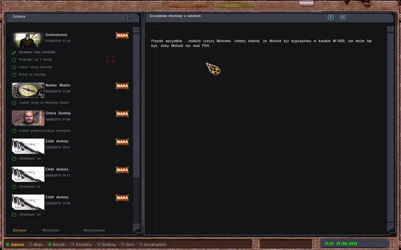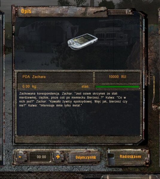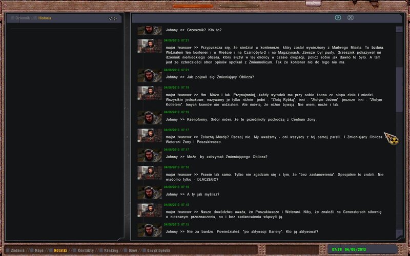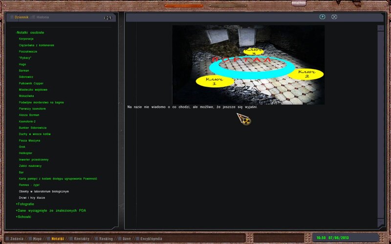 Ja po tym poszedłem na ATP i porozmawiałem z Krzemieniem na temat Kutwy - był wymieniany w jednym z PDA od bandytów. W naszym PDA pojawia się zakładka z trzema kluczami i portalem - to jak wynika ze zdjęcia w Szpitalu. Idziemy do Molocha.