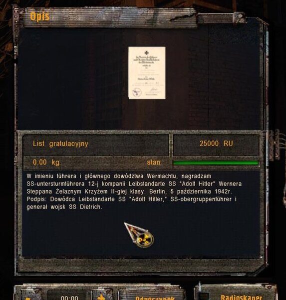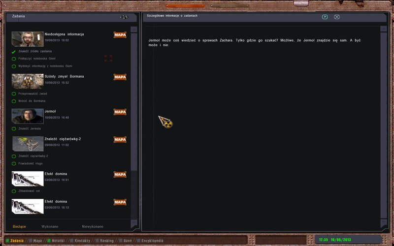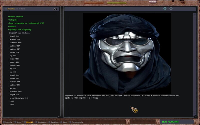 Po wejściu na lokację dostajemy mail - rozszyfrowany pamiętnik Von Berkowa odszyfrowany pojawia nam się w PDA - wart czytania - bardzo zgrabna historia.