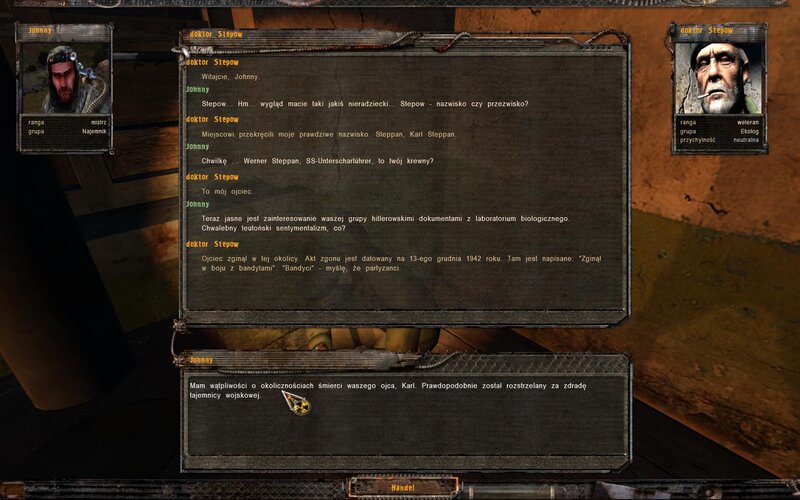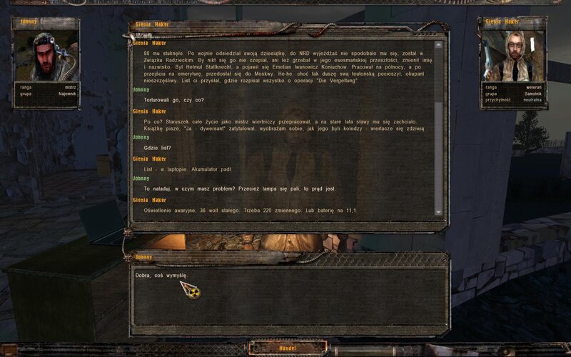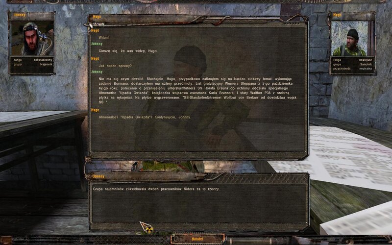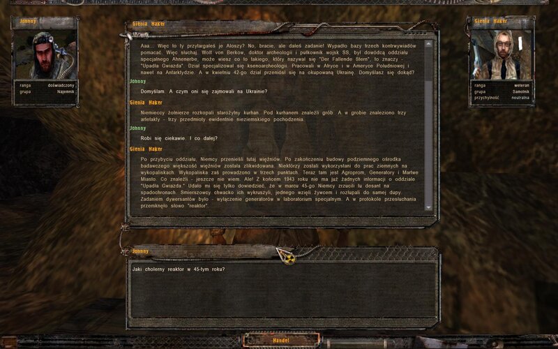 Idziemy do Bormana. Daje zlecenie na Bagnach i odsyła w głąb jaskini na rozmowę z Gienią Hakerem. On rozszyfrował Niemickie dokumenty i opowiada nam o operacji “Upadła Gwiazda” przeprowadzanej na Ukrainie w czasie 2 wojny światowej.