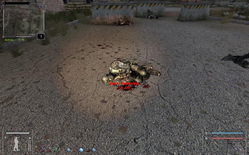 Johny “golec”, poszedł do powinnościowców, pogadał z porucznikiem Jakowlewem, obszedł stadion " na około ", wszedł do teatru, zebrał granaty i jakąś złomową broń i poszedł na dół. Na wszelki wypadek co krok to zapis. Kiedy zobaczyłem kolano wyrodka rzuciłem granat i chodu na schody jak tylko się ruszył - o dziwo, jak grałem bez obejścia stadionu, nie wychodził z pomieszczenia z kanapą, dopóki ja tam nie wszedłem. Potem drugimi schodami znowu do pomieszczenia z mapą. Jeśli wracał na swoje miejsce ( jasne, że nie za pierwszym razem go wykończyłem ) ja też wracałem i znowu granat i chodu. Chyba za trzecim razem, poszedł tak daleko, że mogłem spokojnie dorwać się do skrzyni i zabrać swoje wyposażenia. A dalej już poleciało, pancerz i km, prawie cała skrzynka amunicji, ale pod koniec padł. Nie zapomniałem o zapisaniu tego momentu! Poszedłem na górę i pomogłem Powinnościowcom dobić wyrzutków, strzelając im w plecy. Musiałem ich chyba zabić, bo Powinność z zazdrości aż zzieleniała.