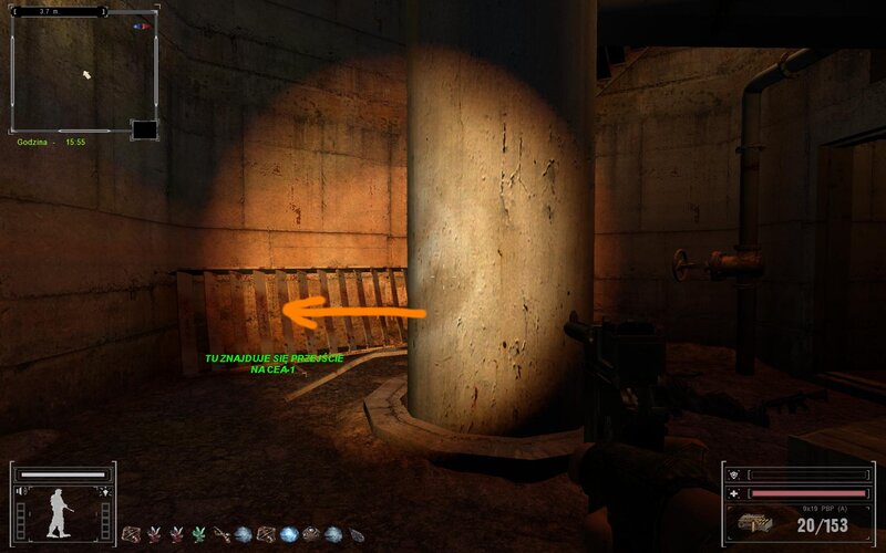 Podążając tunelem docieramy do przejścia na drugą stronę bariery - jest ono tam gdzie po drabinie wydostajemy się z labu.