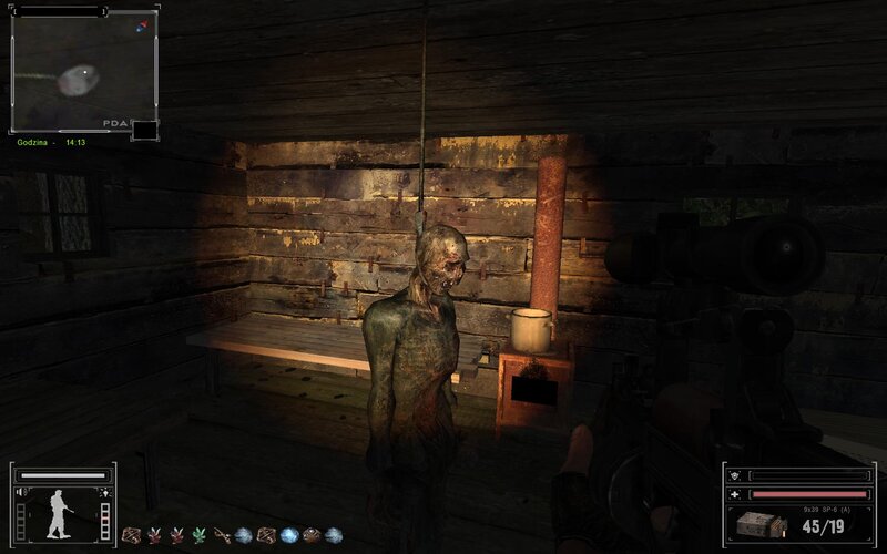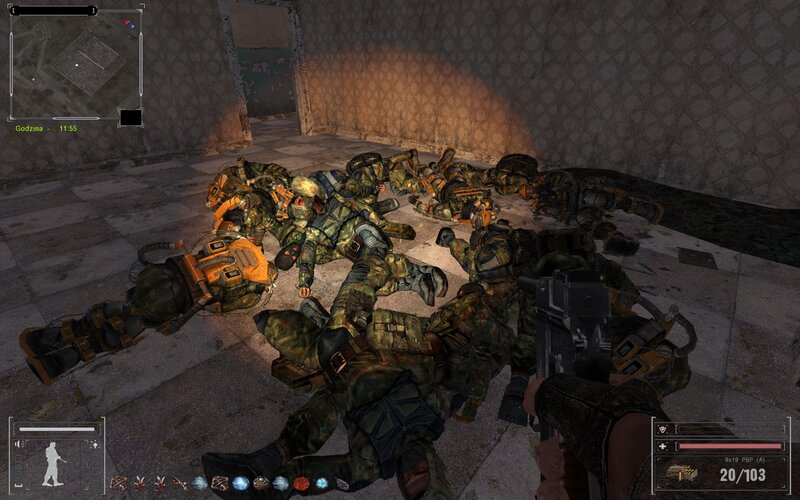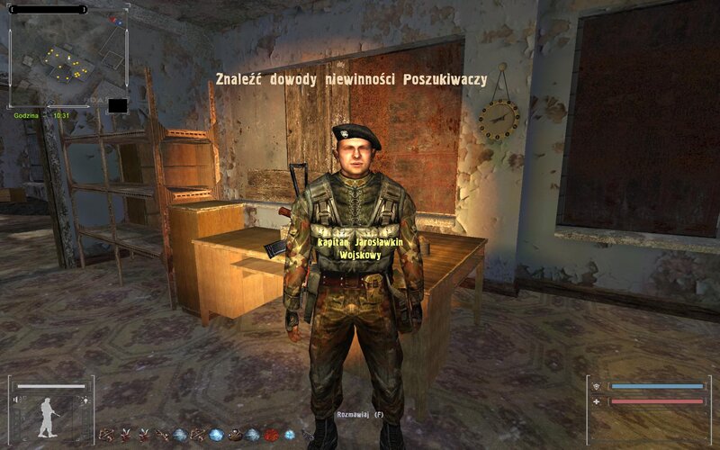 Ponownie mówimy a Woronem o strzałach - ma to gdzieś. Kowcur nas olewa, Słoń coś nam sugeruje ale w ciemno nie wchodzimy. U wojskowych mamy Wowana - mechanika i kpt, Jarosławkina który daje nam zadanie na niewinność Poszukiwaczy. Kambodża samotnik daje nam zadanie na PDA Karasia. Wolnościowców znajdujemy wszystkich martwych.