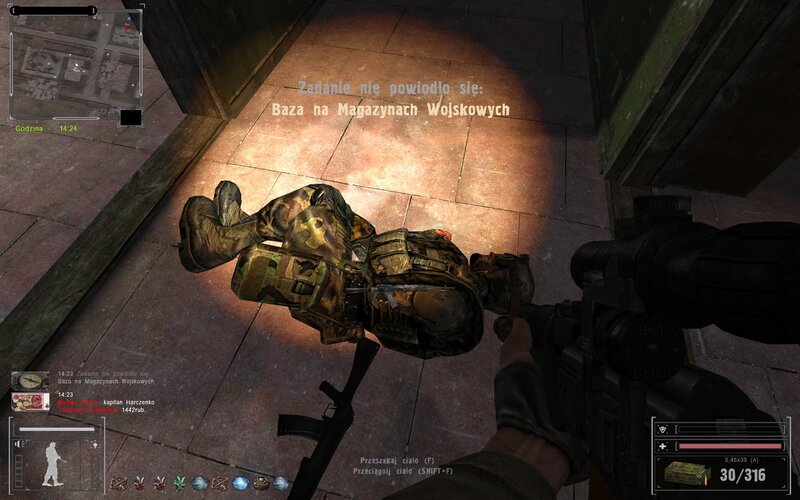 Podczas przeszukania miejsca zbrodni znajdujemy notatkę dotyczącą schowka na Jantarze - wtedy pada strzał. Snajper, jak się okazuje niewprawny, chybia. Dopadamy drania i kasujemy. Zdanie nam się zalicza. Nie ma co prawda pomocnika ale o reszcie dowiadujemy się od Bormana. Prawdziwi sprawcy uciekają na północ Zony. Podejmujemy rękawicę i ruszamy za nimi.