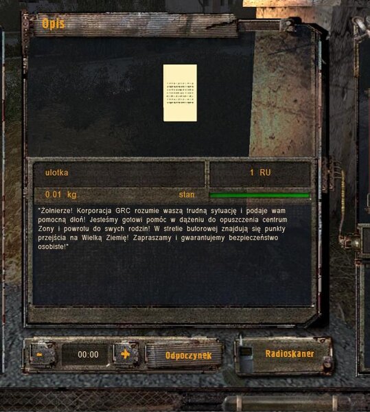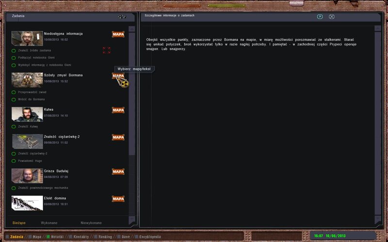 "Dla tych którym śpieszno do zakończenia moda daję informację, że istnieje możliwość ominięcia we Wschodniej Prypeci kilku zadań, oraz zadań w Limańsku i Szpitalu.