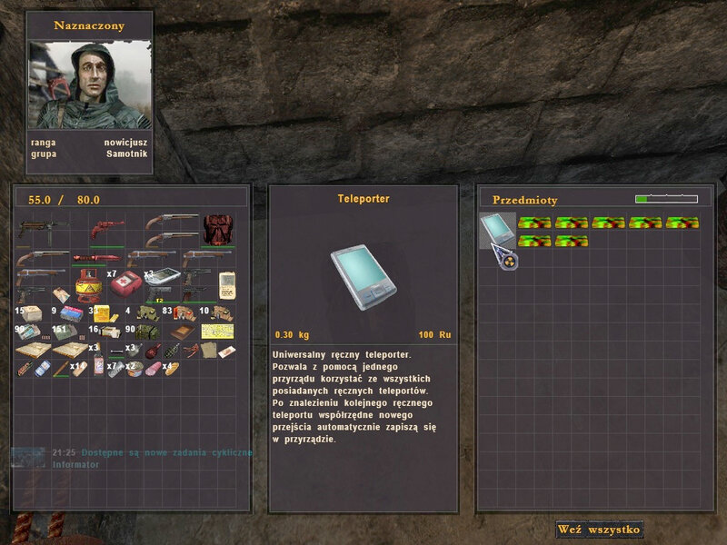 Nie zmieniło się to, że musisz zyskać ręczny teleporter (czyli popracować dla Kostyi) oraz znaleźć teleporty (jest ich 65), które zostaną dodane do przyrządu po kliknięciu na nie - tak jak to było dotychczas w grze. Testowałem, działa bez problemu, chociaż nie wiem czy naliczy “opłatę”, gdy przerobiony skrypt zainstaluje gracz mający już dodane teleporty w urządzeniu? To wymaga testów i tu ukłon w stronę graczy. Ja jestem na etapie Kordonu - czekając na polonizację, więc tego nie sprawdzę, bo fabularnie teleporter w grze dostaje się dość późno (tak przynajmniej było w OP-2.1).