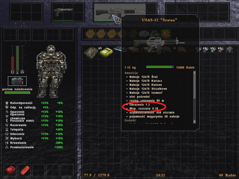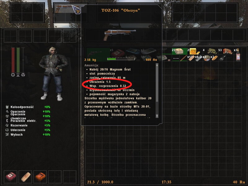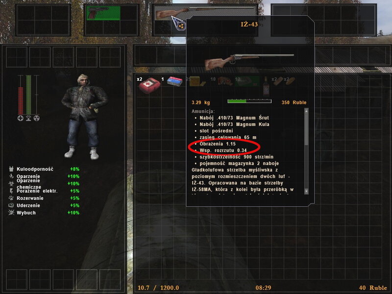 Mod na pokazanie statystyk nie jest mojego autorstwa, bazuje na wersji z tego źródła. Ja tylko spolszczyłem menu. Na screenach zaznaczyłem o jakie statystyki balistyczne chodzi. Tutaj dodano potencjał obalający (siłę rażenia broni) oraz wsp. rozproszenia (odchylenie względem toru lotu). Innymi słowy - wybierając broń na misję dysponujemy informacjami dot. jej możliwości. Ze screen’ów wiem np. że TOZ-106 ma większą siłę rażenia aniżeli IŻ-43, ale kosztem szybkostrzelności etc.