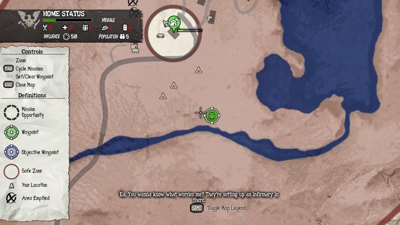 Mamy mapę świata, po której się poruszamy, podczas wędrówki trafiają się różne zdarzenia losowe, coś jak w falloutach. Oprócz lokacji z misjami, czy też rożnych wiosek i miast mamy miejsca, w których możemy rozbijać obozy (często najpierw czeka nas w nich walka bo ktoś już w nich jest)