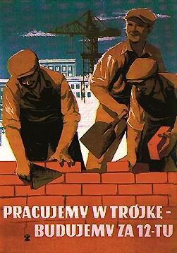 Tym razem plakaty traktowały o przepisach BHP, zdobywaniu i edukacji. Pojawiały się fajne scenki rodzajowe które zupełnie zaprzeczały wcześniejszym trendom do śrubowania norm, jak choćby zaczęto podkreślać konieczność przestrzegania takich rzeczy jak limity załadunku, zachowywanie bezpiecznych odległości, potępiano ryzyko pracy bez odpowiednich zabezpieczeń itp.