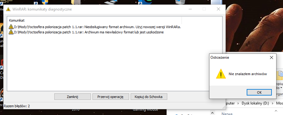Nie jestem w stanie rozpakować patcha do sposzczenia. A za każdym razem jak próbuję to coś takiego mi się wyświetla.