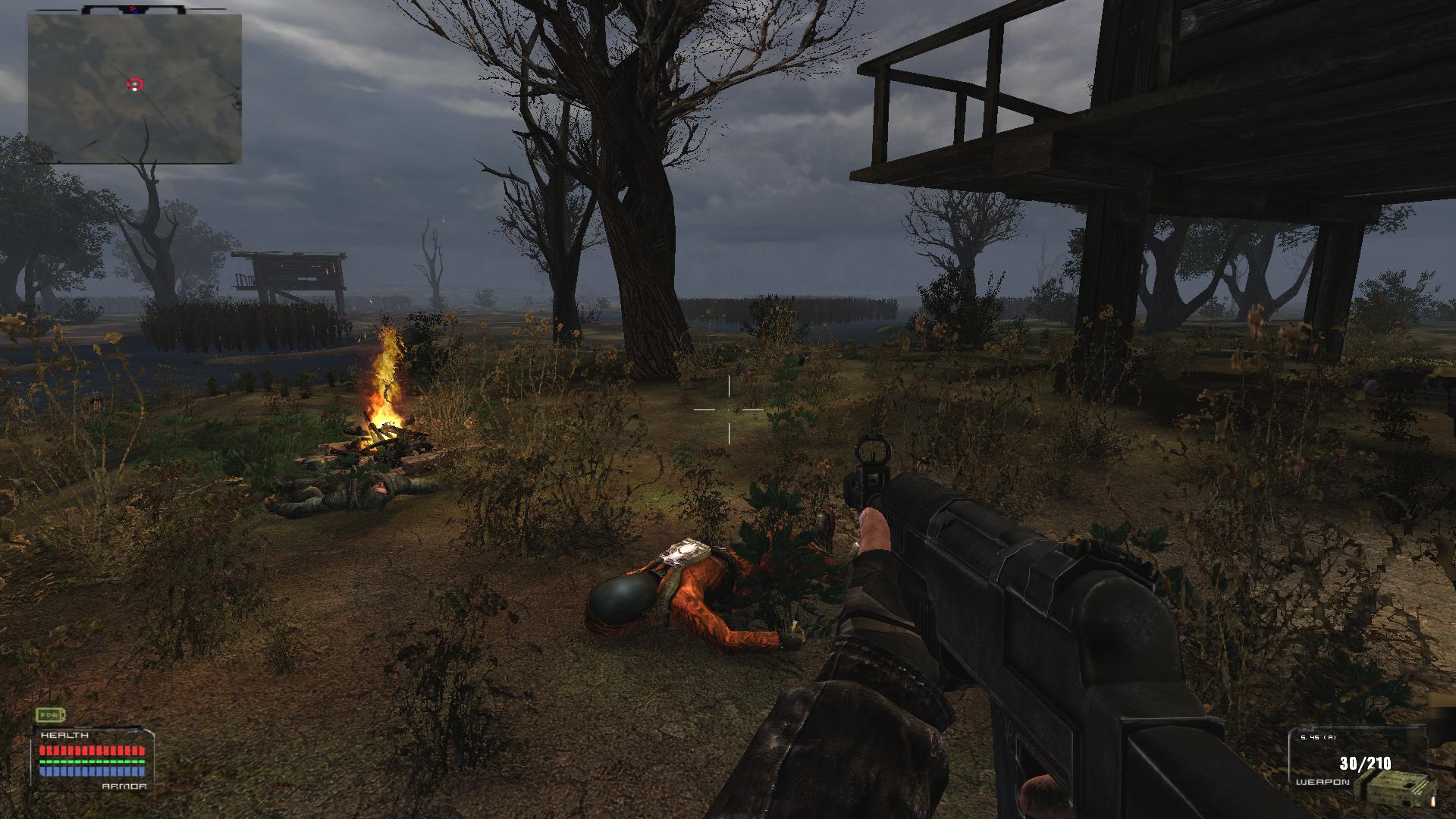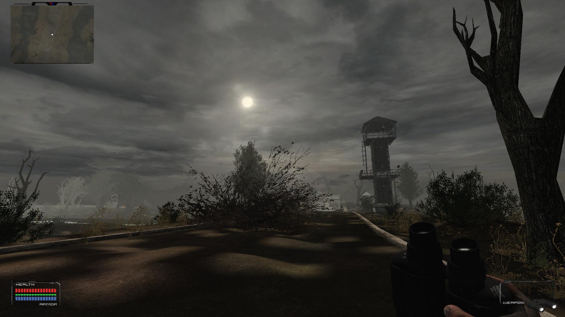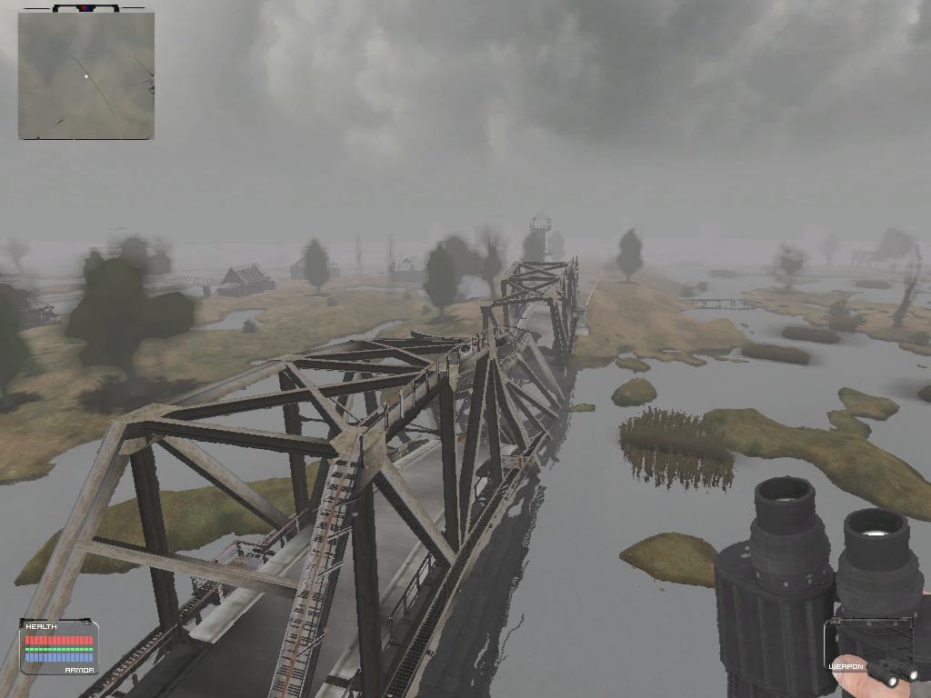 Ląduję przed zawalonym mostem, mam abakana, nie jest źle, idę szukać wg. kwesta nr 2 czyli stalkerów, polazłem na lewo i od razu widać, że ta lokacja jest trochę inna, inne budynki itd/itp, gram dalej.