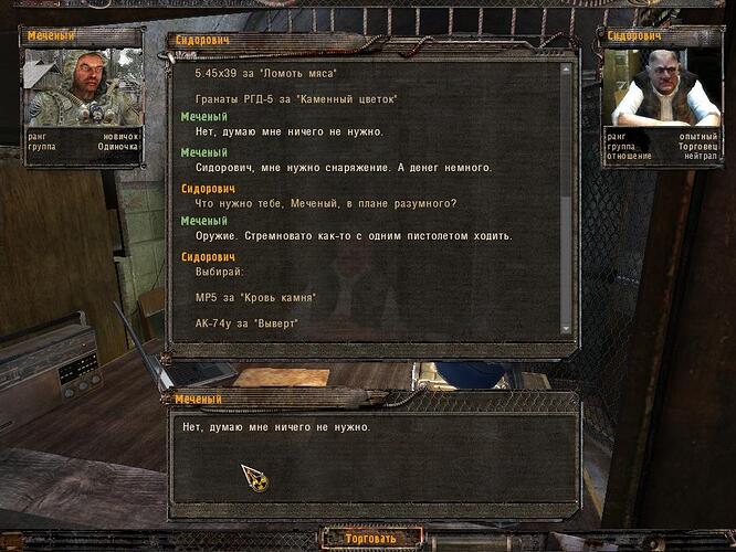 - Grawigun (leży w Х-18 w trupie Kalugina)
