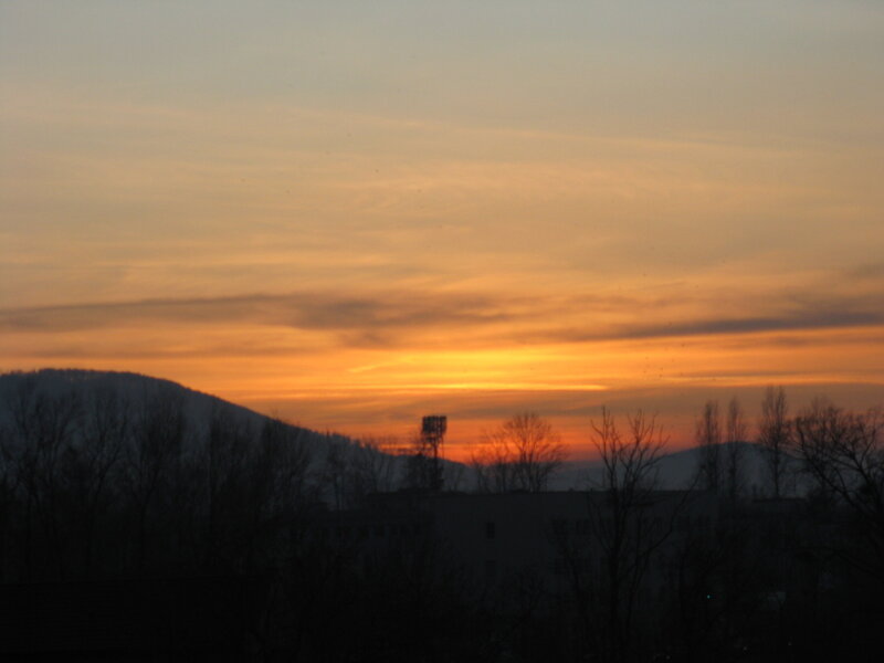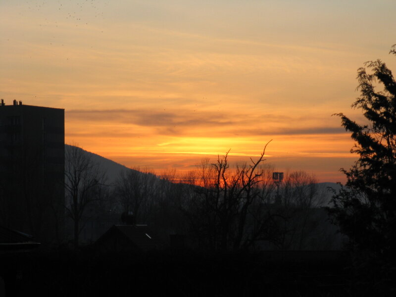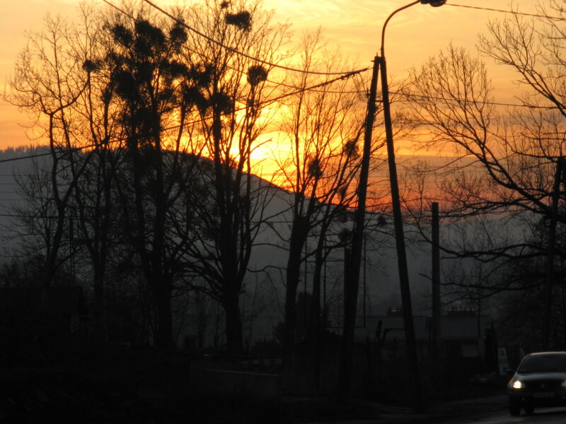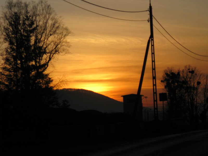 Tak wygląda listopadowy zmierzch nad Beskidami. Górę którą widać, to jedna z ostatnich w północno-zachodnich Karpatach. Potem długo-długo nic i Sudety.