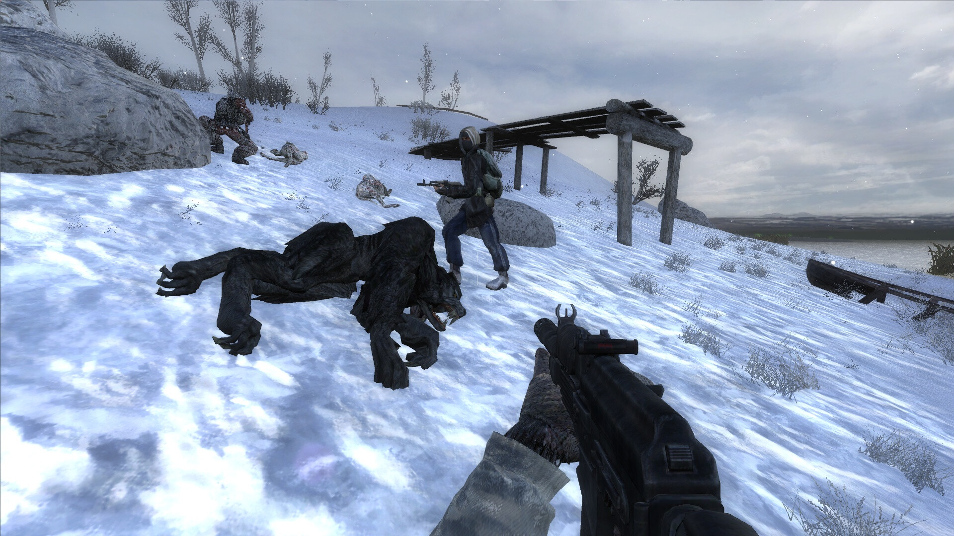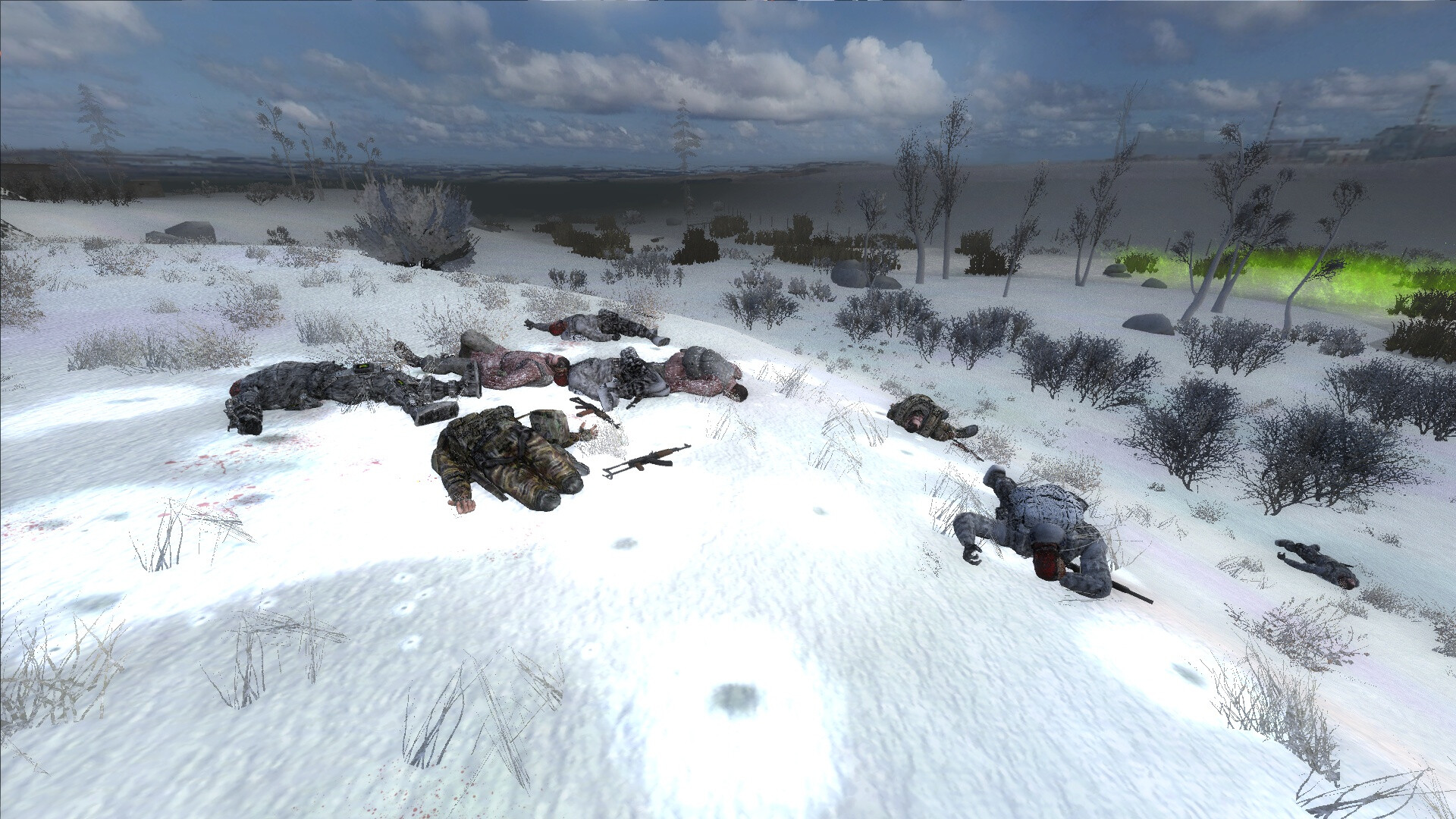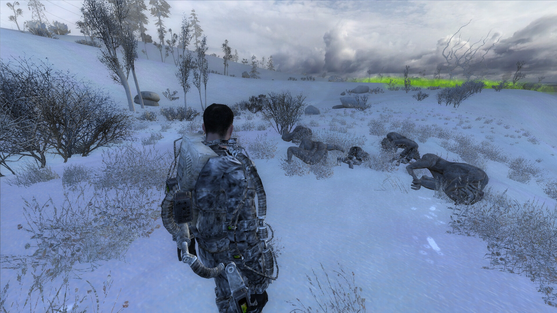 No i uruchomiłem moda w wersji Alternatywa. Zauroczyła mnie grafika, bardzo dopracowana, Śnieg nie jest białą plamą, ale ma swoją fakturę. Kombinezony NPCów w zimowym kamuflażu. Również drzewa, krzaki, trawa są takie, że widać zimę. Nawet część mutantów się kamufluje. Całkowicie zniknęła fabuła ZP, żadnych poszukiwań śmigłowców, cudownych broni itp. Nowy GB i nowa fabuła. Mimo że jeszcze ma małe niedoróbki, jak nie znikanie zadań z PDA po ich zaliczeniu, oraz wylotów przy wgrywaniu np. poprzedniego zapisu i przy kończeniu gry, da się grać i nie nudzić. Tu parę screenów.