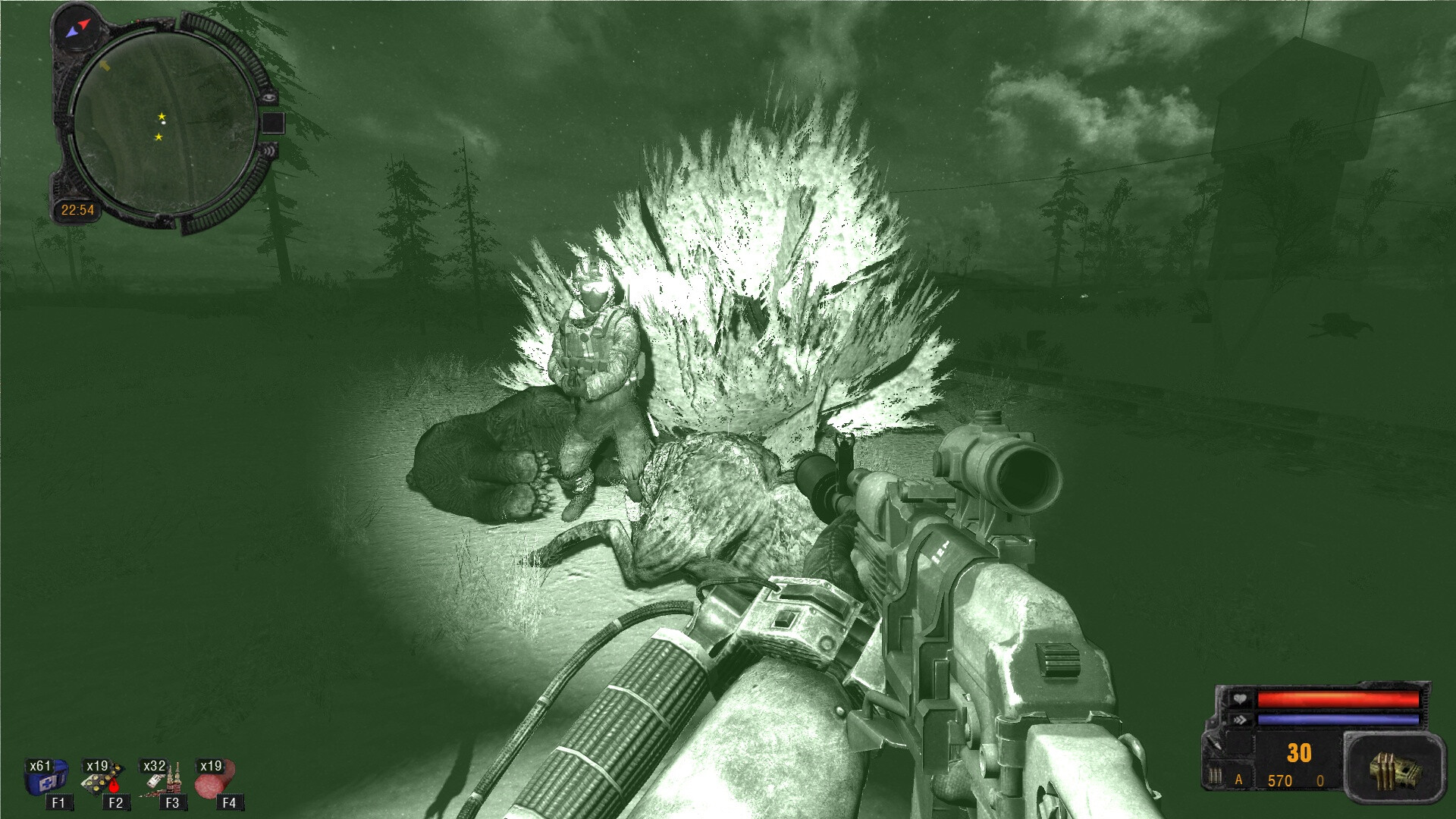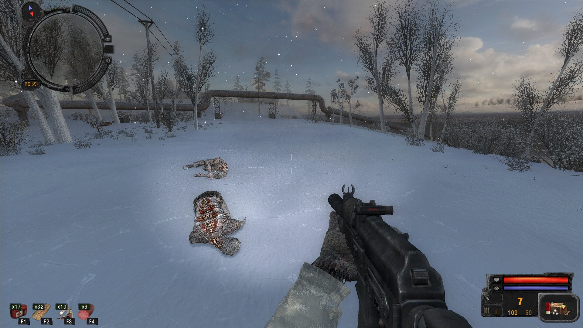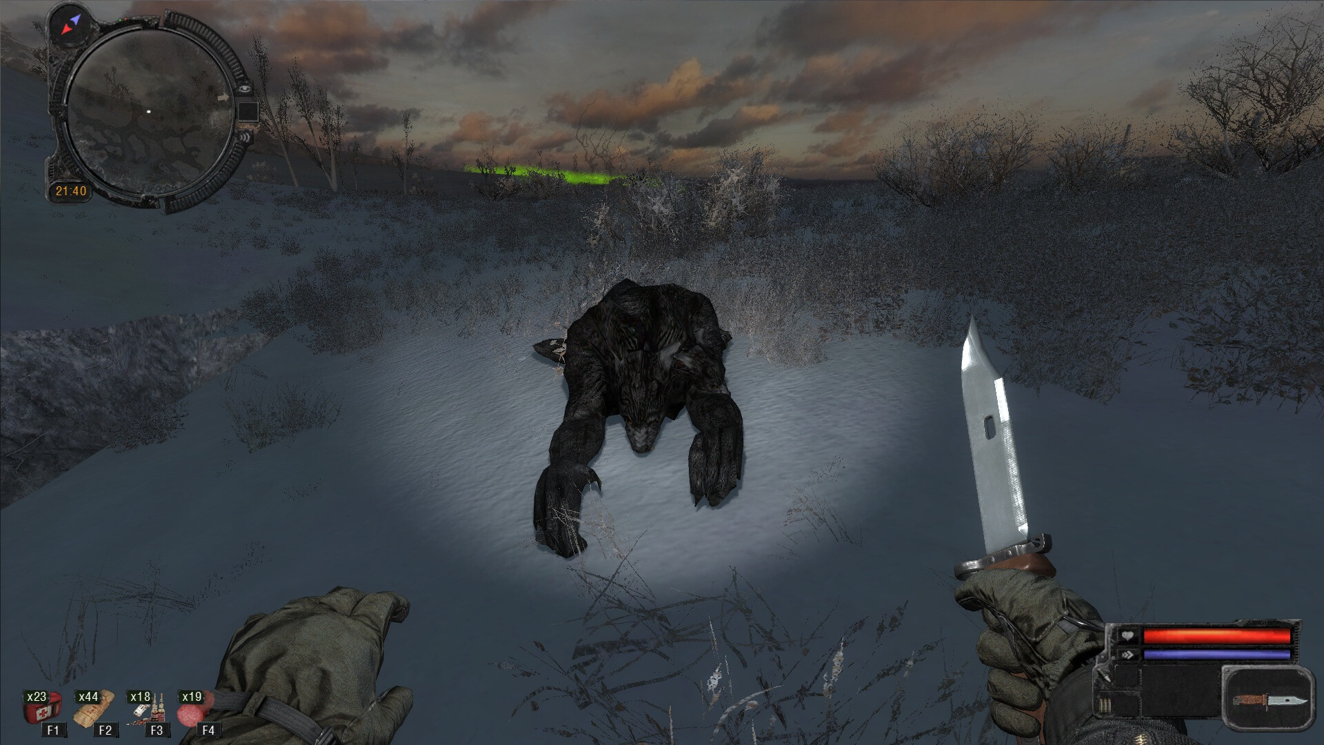 No i uruchomiłem moda w wersji Alternatywa. Zauroczyła mnie grafika, bardzo dopracowana, Śnieg nie jest białą plamą, ale ma swoją fakturę. Kombinezony NPCów w zimowym kamuflażu. Również drzewa, krzaki, trawa są takie, że widać zimę. Nawet część mutantów się kamufluje. Całkowicie zniknęła fabuła ZP, żadnych poszukiwań śmigłowców, cudownych broni itp. Nowy GB i nowa fabuła. Mimo że jeszcze ma małe niedoróbki, jak nie znikanie zadań z PDA po ich zaliczeniu, oraz wylotów przy wgrywaniu np. poprzedniego zapisu i przy kończeniu gry, da się grać i nie nudzić. Tu parę screenów.