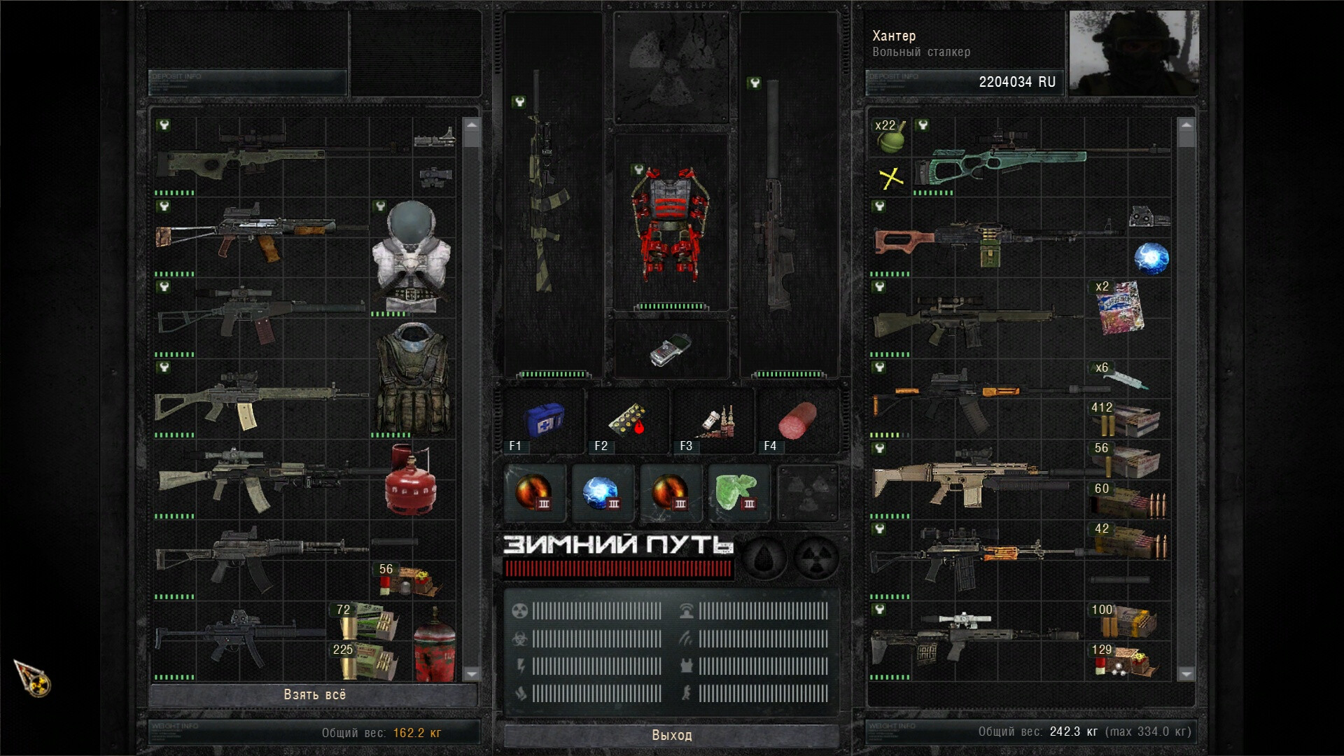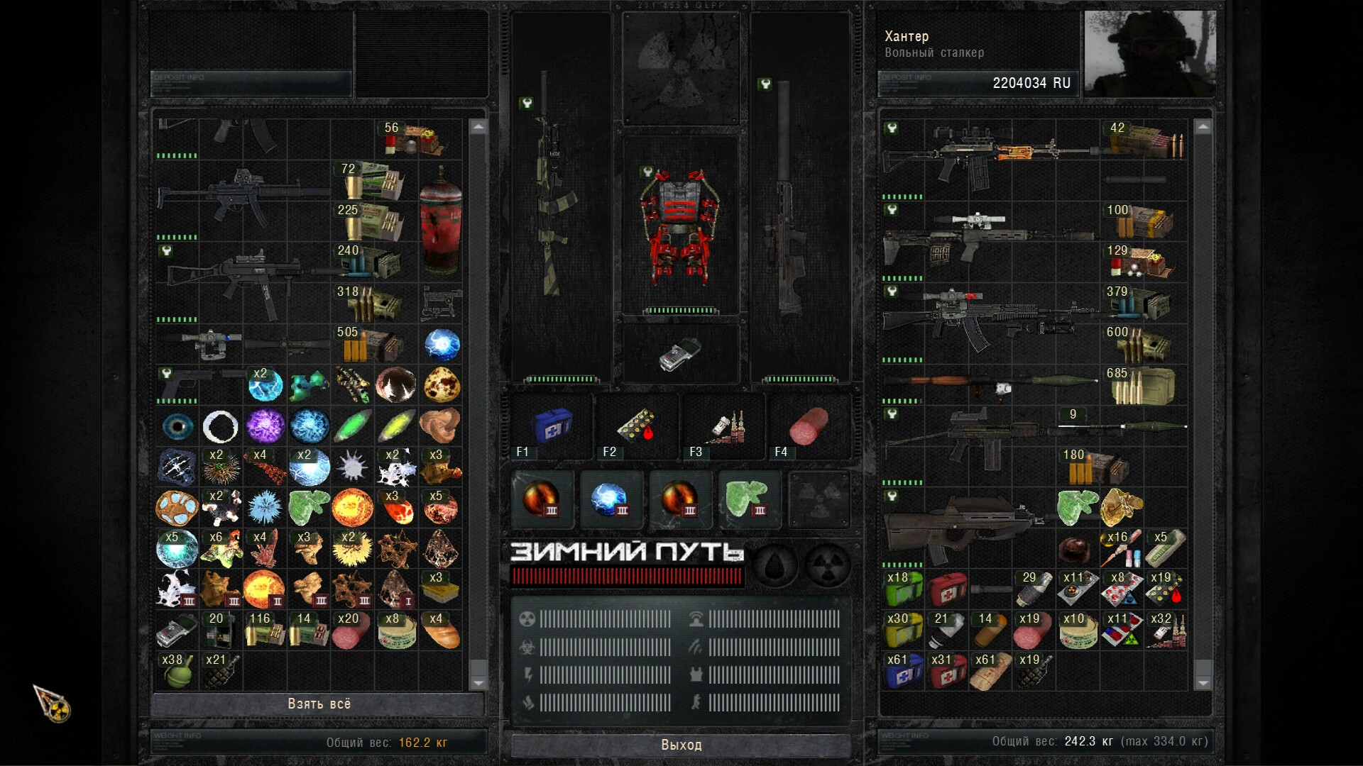 Kasę liczoną na grube tysiące dostajemy za zadania. Za broń niezbyt uszkodzoną też dobra kasa. Sporo handlarzy, od żarcia, od pancerzy, od broni. A nawet ten biały pancerz, wart w sprzedażny 300 000. Ten widoczny udźwig uzyskałem poprzez transmutację artefaktów które mam na pasie.