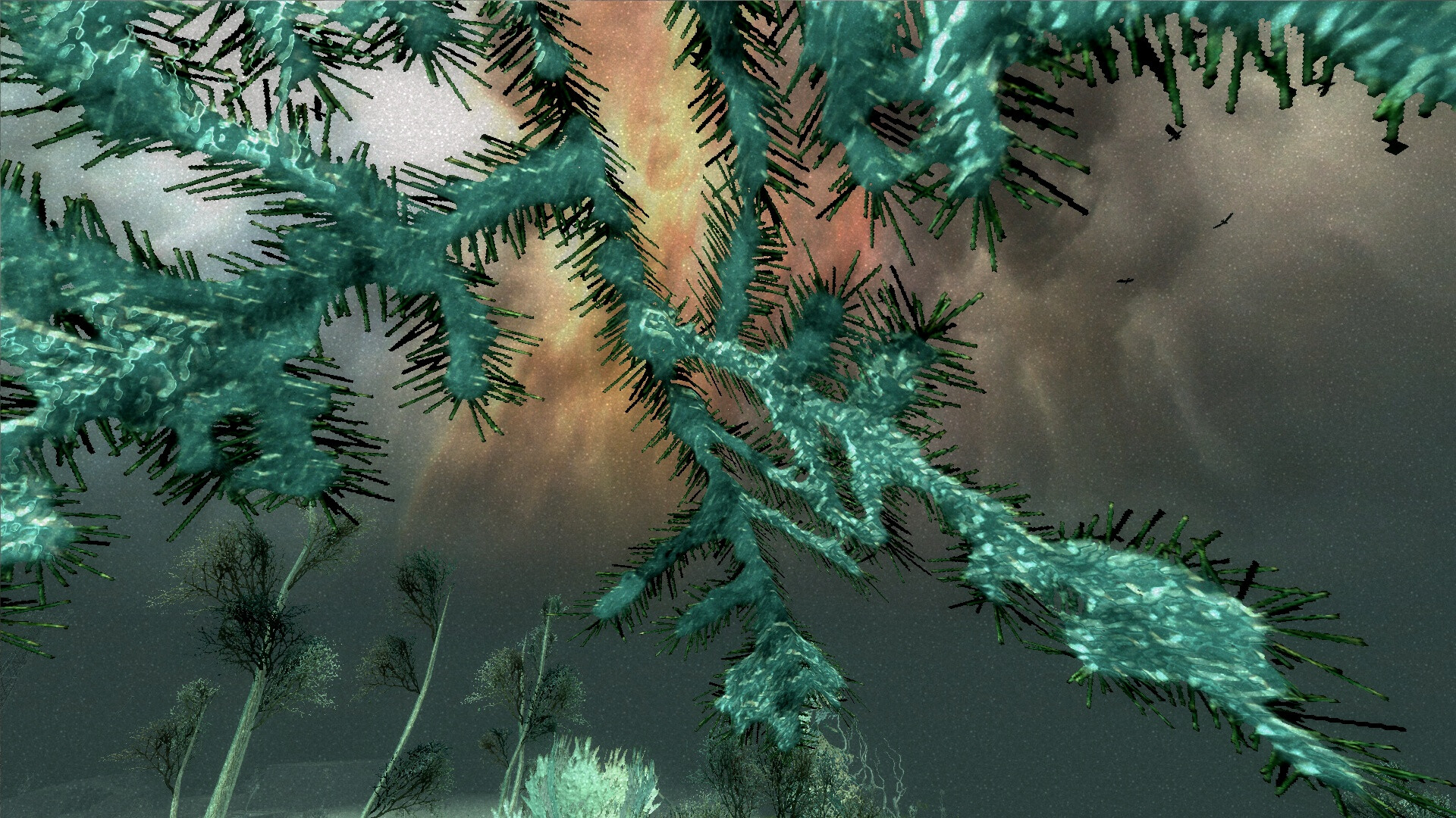 Jest do kogo i czego postrzelać, podziabać nożem. No i te widoki. Warto czasem stanąć, rozejrzeć się. Zobaczyć takie coś, jak na tym screenie, gdzie emisję widać przez jodłową gałązkę.