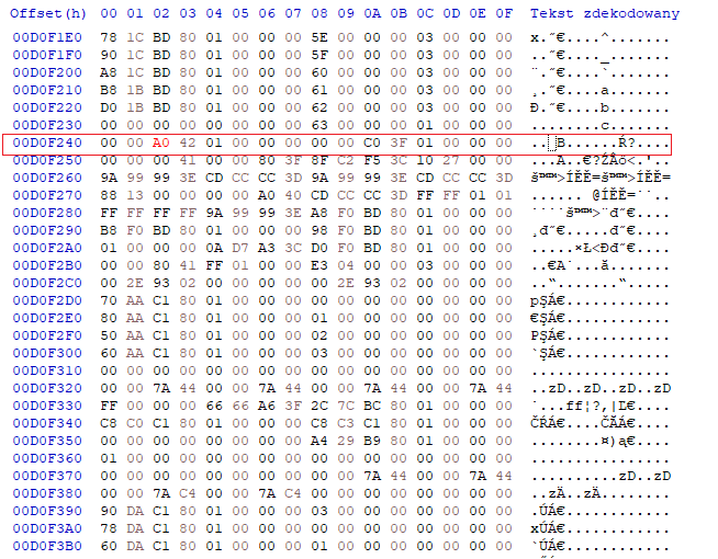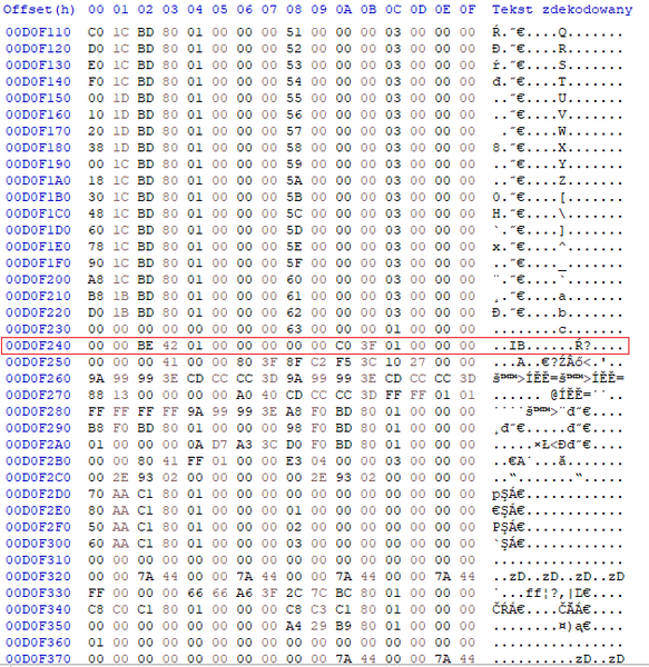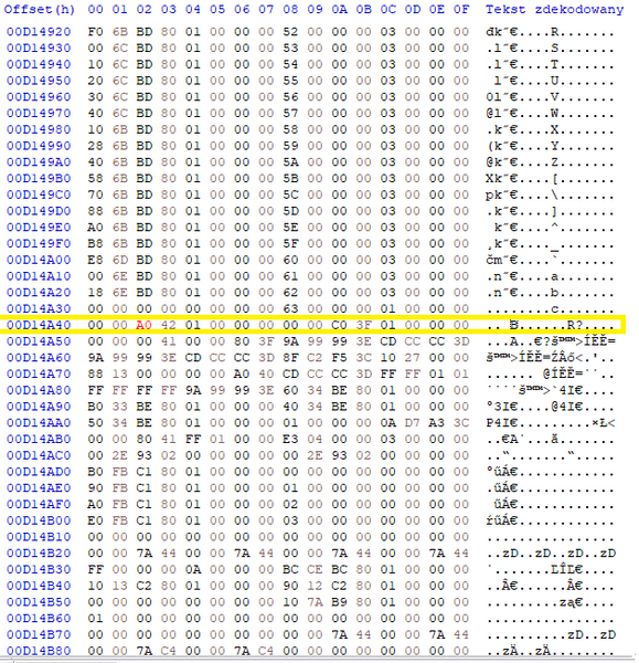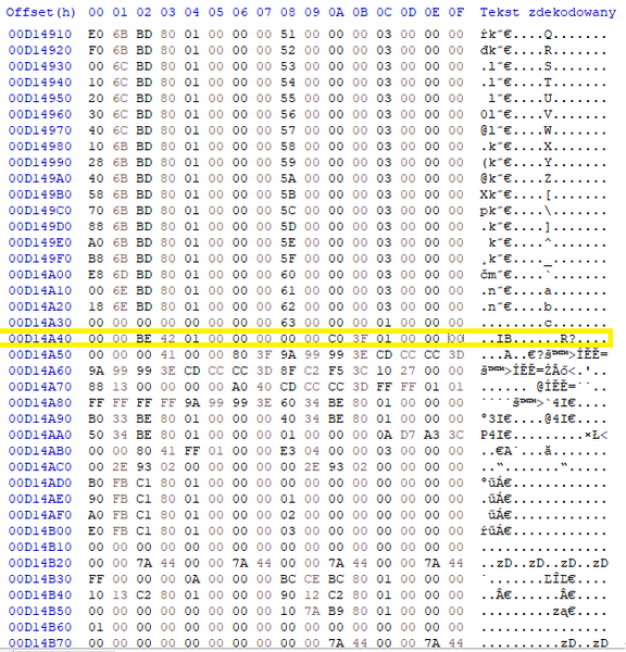W Taki sposób, zamieniamy na wymarzoną, wyliczoną ze stronki wartość FOV. Zamieniamy literkę przed (lub w offsecie 02, tam gdzie ja mam A0)Bna tą która nam wyszła z obliczeń.