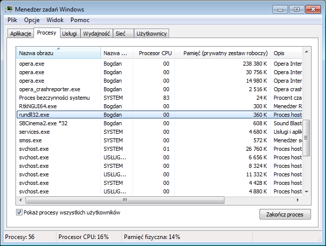 Spróbuj wyłączyć w menadżerze zadań rundll32.exe morze pomorze.