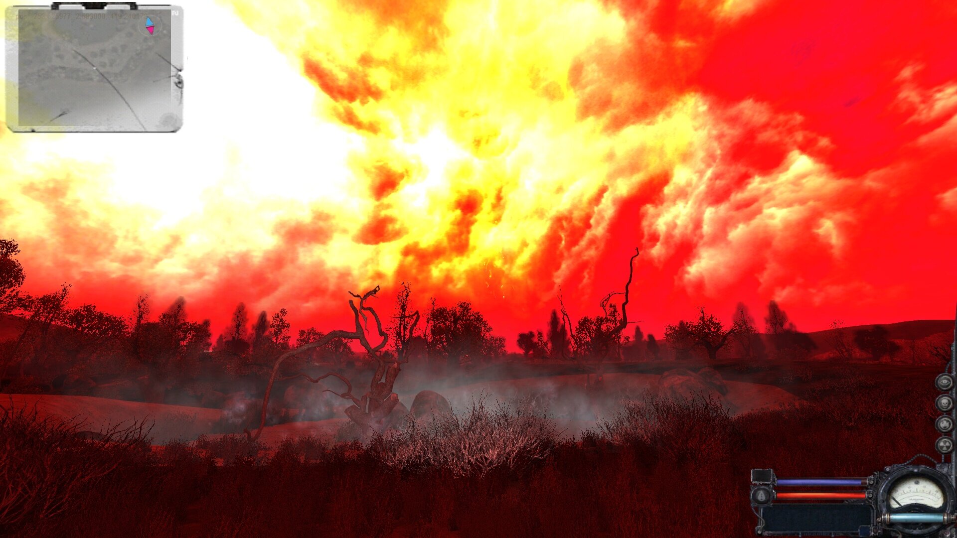 znajdujemy przejście w otaczających go anomaliach i zabieramy grzyba. Na lokacji znajduje się wiele podobnie świecących grzybów, ale przy zabraniu kwestowego, dostajemy dodatkowo takie potwierdzenie od moda. To nie emisja i nie jest to groźne. Możemy stać i podziwiać.